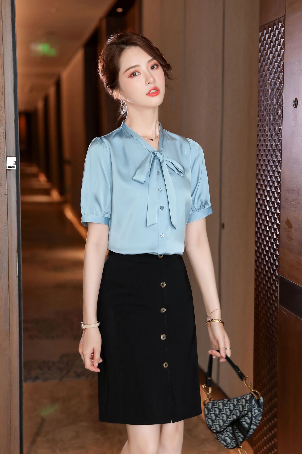 Việc kết hợp giữa áo sơ mi cổ điển với sắc pastel tạo sự hài hòa giữa nét trang nhã và vẻ đẹp tự nhiên. Mẫu áo này thích hợp cho các công ty muốn truyền tải sự dịu dàng, tinh tế và gần gũi với khách hàng.